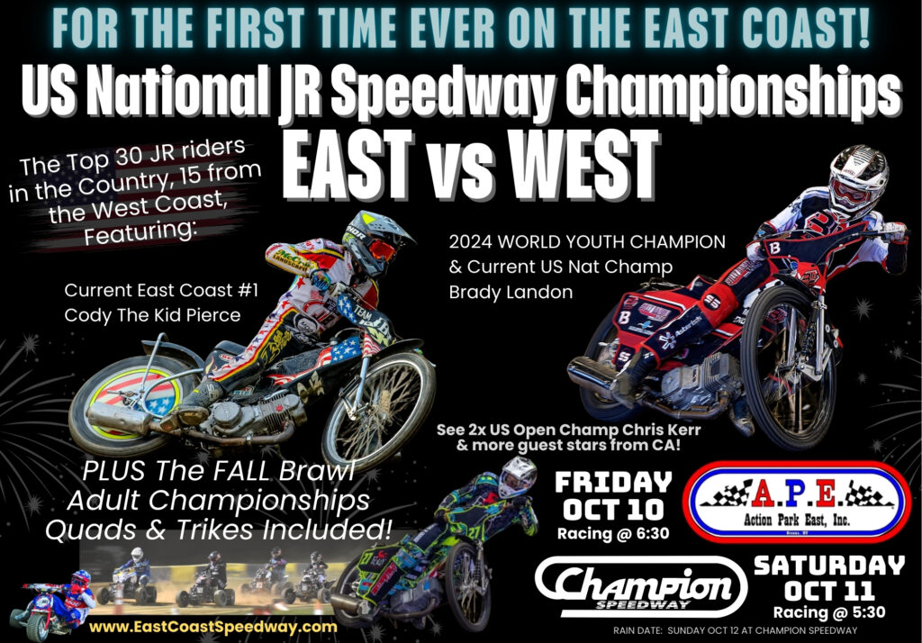 The first day (Friday) to be run at Action Park East with racing starting at 6:30pm.